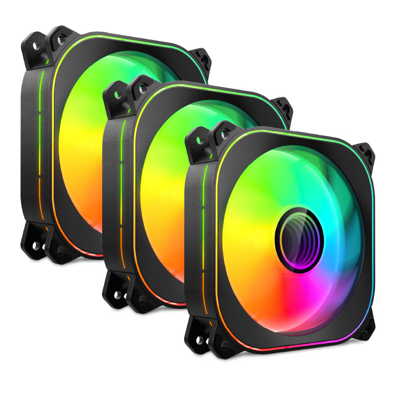 El set de 3 ventiladores FC-1281A combina tecnología y un excelente rendimiento de refrigeración con customización avanzada gracias al efecto de luces Infinity Mirror ARGB 360º.
