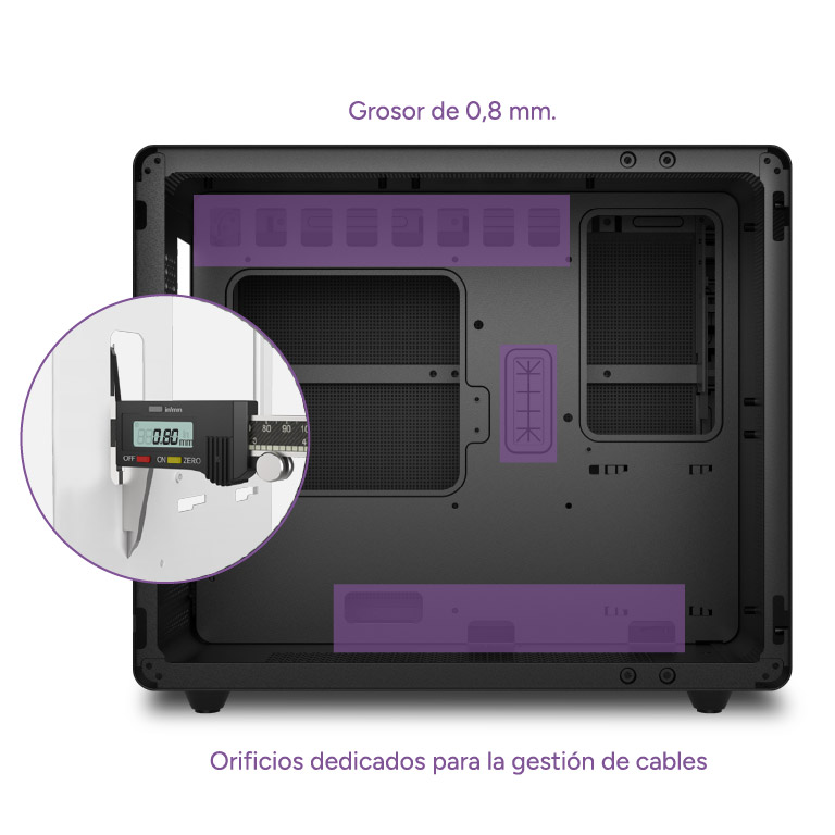 - Chasis: SPCC Grado A de 0,8 mm de espesor