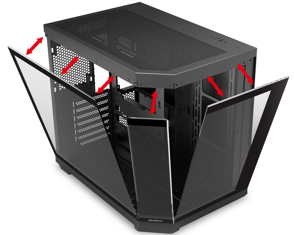 Con paneles de vidrio templado que podés sacar fácilmente, una capacidad de refrigeración fuera de serie y compatibilidad con motherboards de conector inverso, la CM-B950S te permite personalizar todo a tu manera y optimizar tu experiencia como nunca antes.