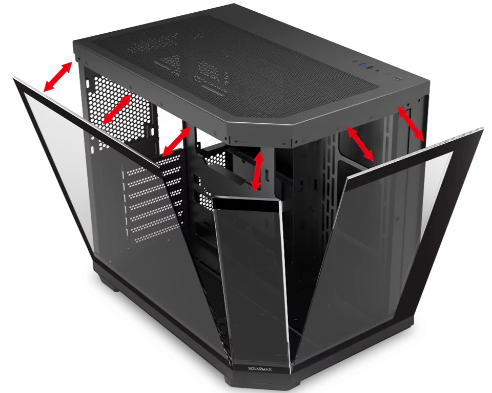 Con paneles de vidrio templado que podés sacar fácilmente, una capacidad de refrigeración fuera de serie y compatibilidad con motherboards de conector inverso, la CM-W950 te permite personalizar todo a tu manera y optimizar tu experiencia como nunca antes.