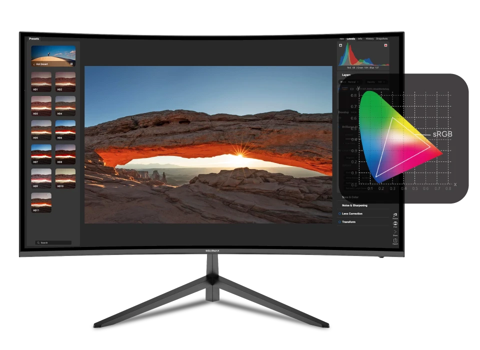 Este monitor nos ofrece una gama cromática excepcional: 99% sRGB, 95% DCI-P3, 85% NTSC y 95% Adobe RGB. Esto significa que puede reproducir una mayor cantidad de colores, desde tonos intensos y vibrantes hasta matices sutiles, logrando imágenes más reales y precisas.